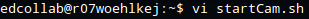 Create a shell script called startCam.sh (whatever editor you prefer—use nano if you don’t know vi):