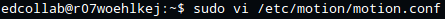 Now open motion.conf. We need to make a few changes in here, all of which can be edited later to give us abilities like streaming the motion camera on a certain port.